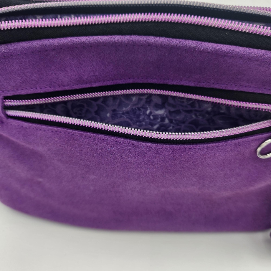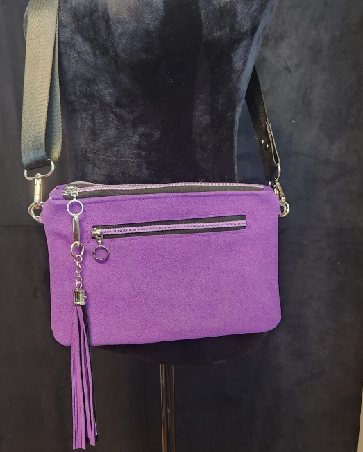 This suede handmade purse has 2 separate zippered purse openings which combines two worlds of cross-body and clutch, which give plenty of room.