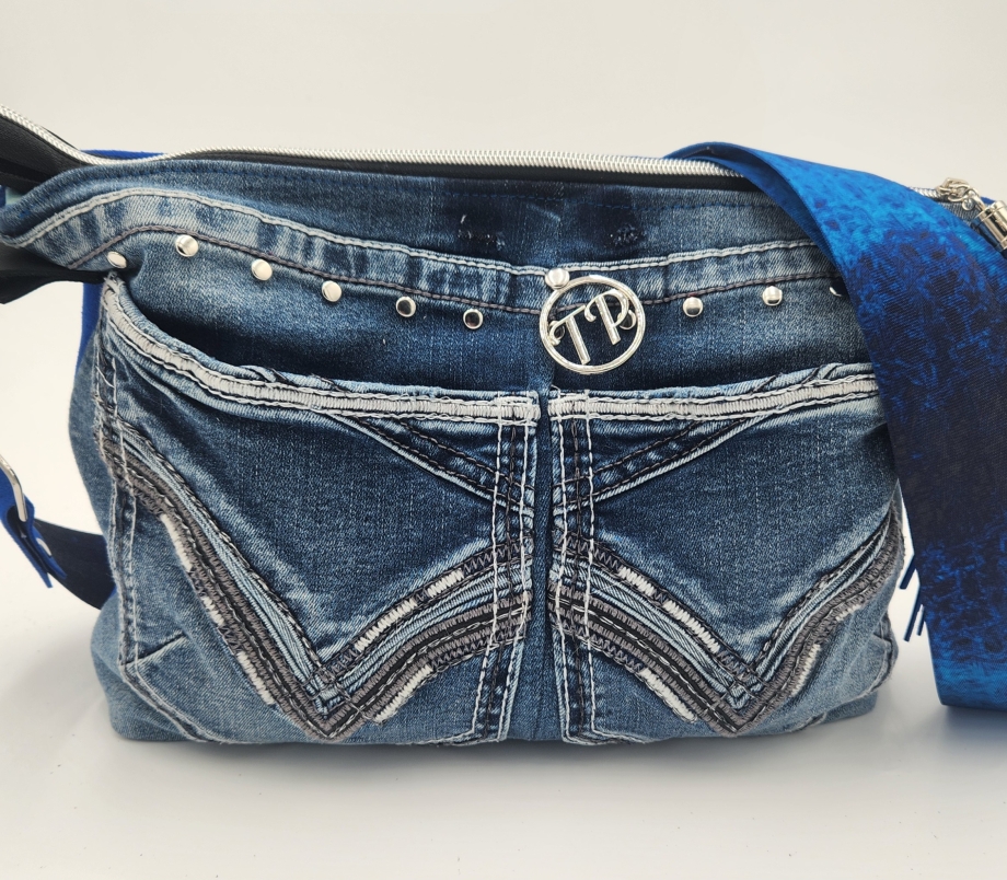 The perfect combination of western chic. Side 1 has orginal denim pockets and side 2 is suede with multiple zipper pockets..Check out cowboy boot zipper pulls.. Zipper pockets lined with western fabric, to give your purse the perfect country chic look.