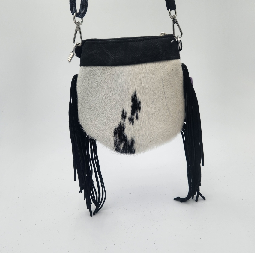 It has full zipper top closure, fully lined, fringe, and eye catching hardware.