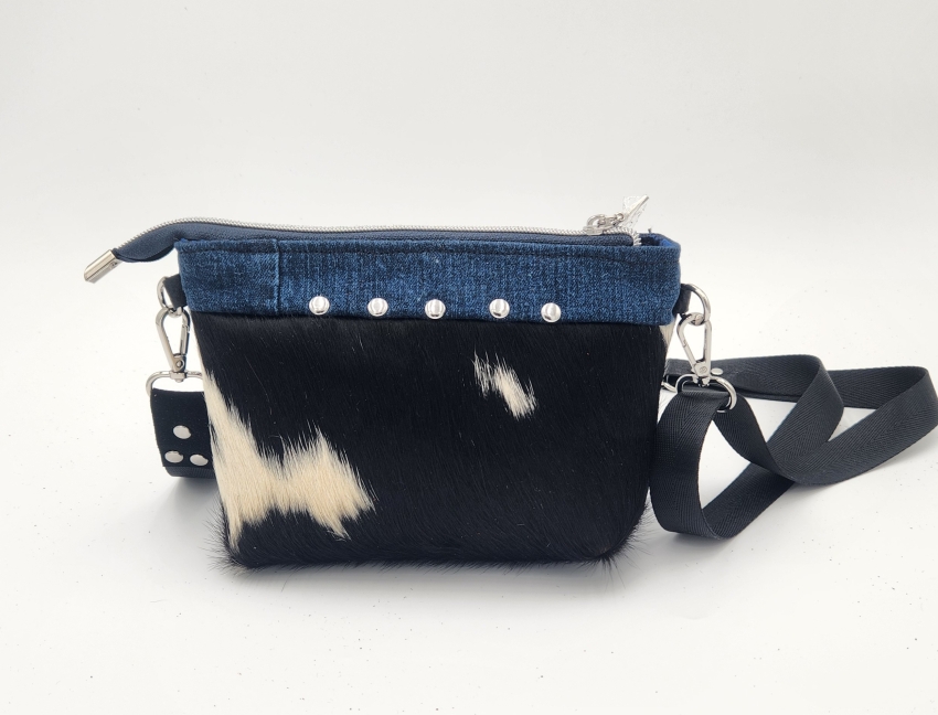 Made with cow hair hide displaying a unique pattern.